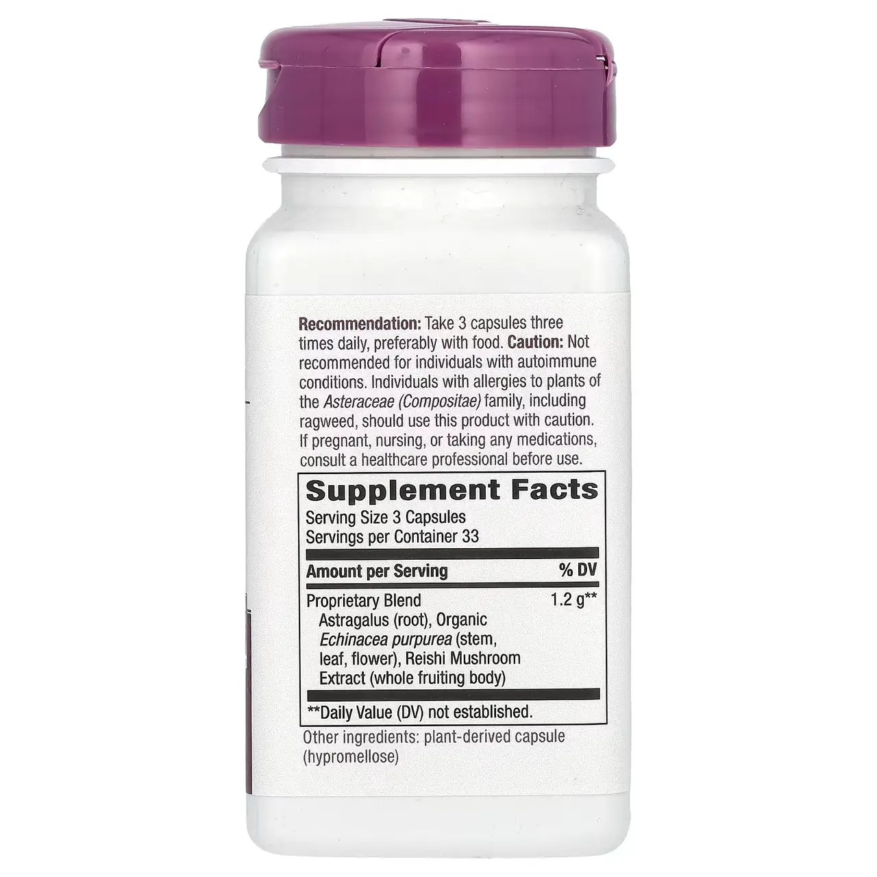 Формула, що включає ехінацею, астрагал і рейші, підтримує імунну систему. Має протизапальну, противірусну, протигрибкову і імуномодулюючу дію.