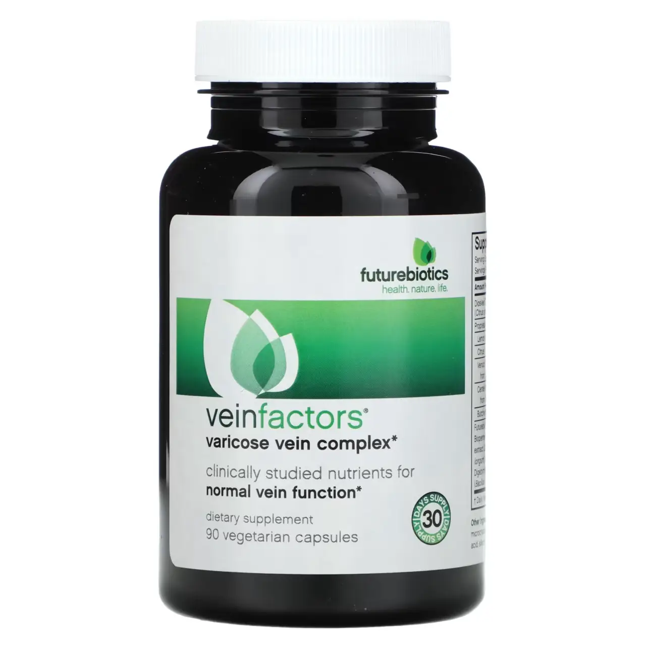 Препарат VeinFactors містить поживні речовини для нормальної функції вен, тонусу і поліпшення кровообігу у венах. Потужні природні інгредієнти з цитрусовою шкірки, готу коли і кінського каштана допомагають підтримувати нормальну функцію вен.